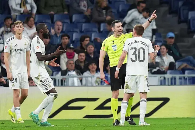 Ekipi u përcoll me fishkëllima dhe me thirrje “Florentino jep dorëheqje”. Në sfidën me Celta Vigo do të mungojnë Huijsen (pezullim), Mastantuono (karton i kuq pas gjestit ndaj Muñiz Ruiz), Carreras (pezullim) dhe Militao. Edhe Vinicius u ndëshkua me të verdhë. Arbeloa shpreson të rikuperojë Asencio.