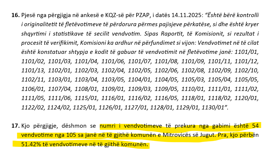 Ankesa i referohet ligjit zgjedhor, sipas të cilit çdo fletëvotim duhet të ketë numër unik serial dhe kodin e vendvotimit.