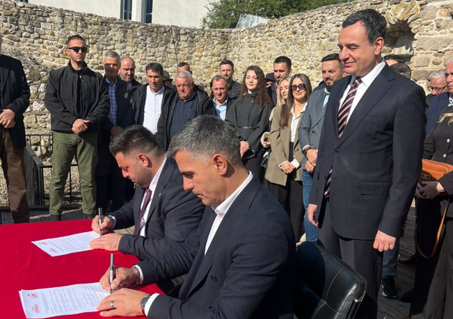 Marrëveshjen, të cilën e ‘miratoi’ me prezencë edhe kryetari i Vetëvendosjes Albin Kurti, ‘Xhafa’ e nënshkroi në një ceremoni në qendër të qytetit të Vushtrrisë.