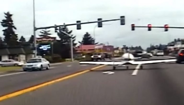 Siç shihet nga videoja e regjistruar nga kamera e një makine që po kalonte aty pranë, avioni një KR2 ndaloi në mes të makinave para një semafori të kuq.
