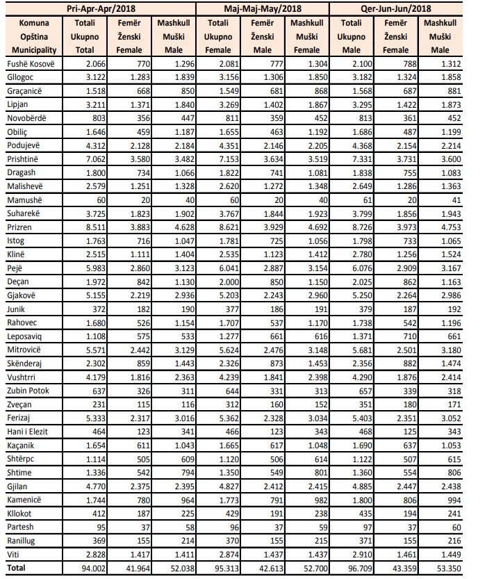 Në bazë të gjinisë, ka më shumë meshkuj punëkërkues. Sipas ‘ASK’ 53 mijë e 350 persona kanë qenë të regjistruar në vitin 2018. Ndërsa 43 mijë e 359 kanë qenë femra.