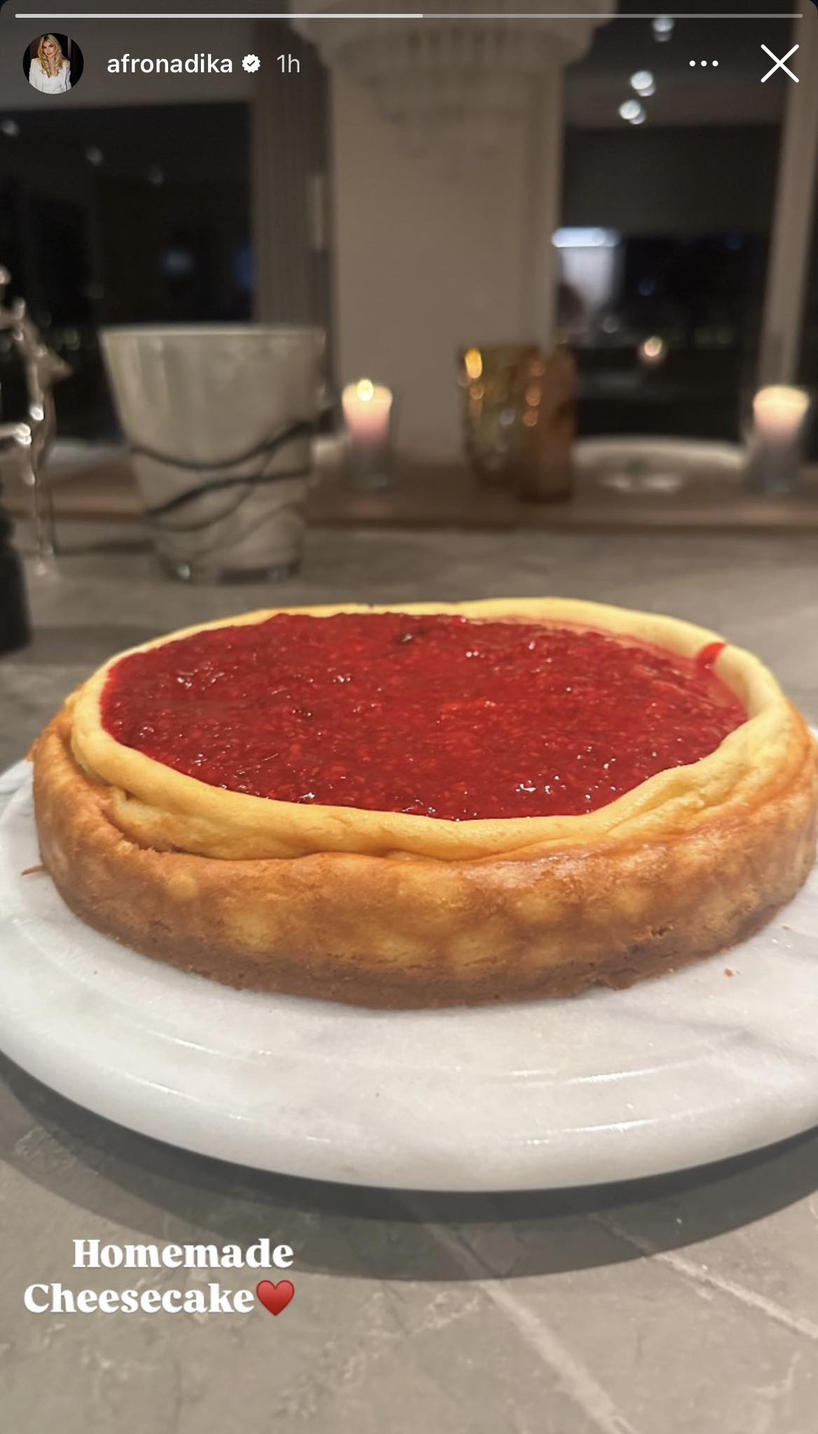 Në Instastory, ajo ka ndarë një fotografi të një torte të përgatitur vetë.