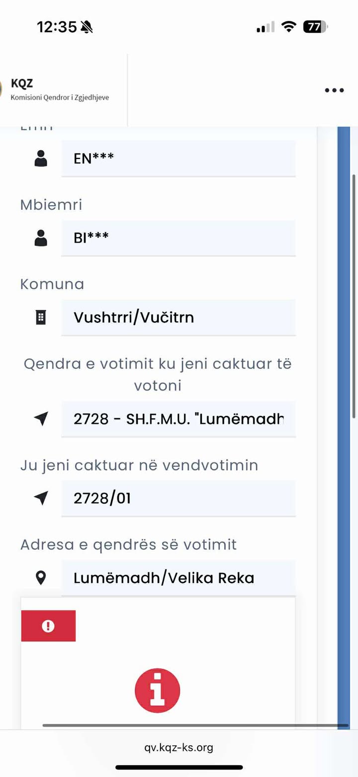 Një lexues ka raportuar një parregullsi në redaksinë e Klankosova.tv, lidhur me procesin zgjedhor që lidhet me të drejtën e votës dhe vendndodhjen e qendrës së votimit.