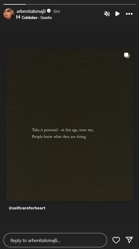 Arbenita qe nga ndarja me reperin Fero, instagramin e saj përveç punës e ka përdorur edhe për sqarimin e situatave e ”kunja”.