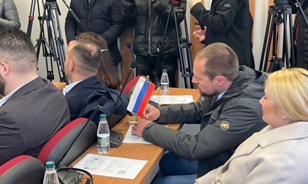 Mirëpo një asamblist i Komunës së Mitrovicës Veriore para vetes ka vendosur flamurin serb.