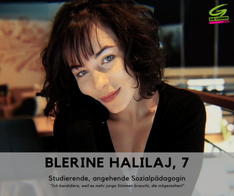 Blerinë Halilaj është kandidate nga radhët e Partisë së Gjelbër me numrin 7, dhe fokusi i saj është në mbrojtjen e ambientit, mbrojtjen e kafshëve dhe kundër ngrohjes globale.