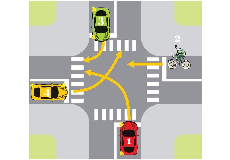 Si duhet të jetë radha e kalimit të pjesëmarrësve në trafik në këtë kryqëzim?