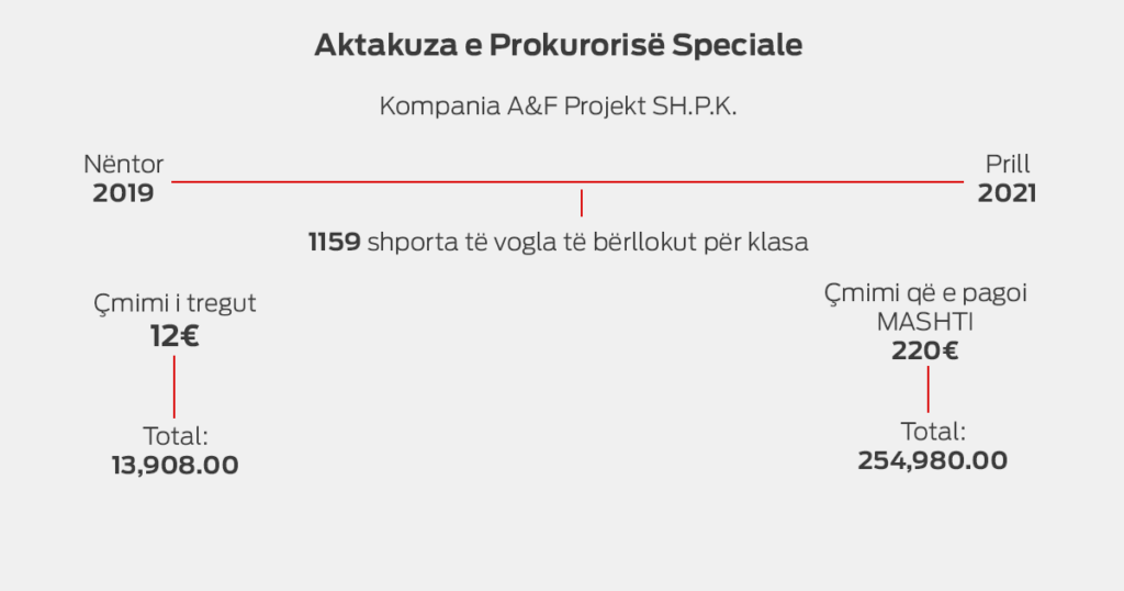 Sipas aktakuzës së PSRK-së, në procedurën e prokurimit “Blerja e Pakove për fusha lëndore dhe mirëmbajtje”, zyrtarë të MASHTI-i akuzohen se kishin vepruar kundërligjshëm duke kontraktuar produkte që çmimin në treg e kishin shumë më të ulët sesa që Ministria i kishte paguar gjatë viteve 2019-2021.