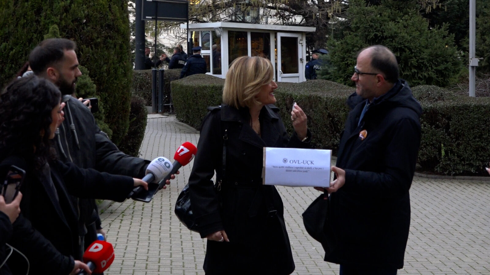 Ata kanë pritur deputetët e Kuvendit të Kosovës, ku ia shpërndanë brosha të ish-krerëve të UÇK-së të cilët po gjykohen në Gjykatën Speciale.