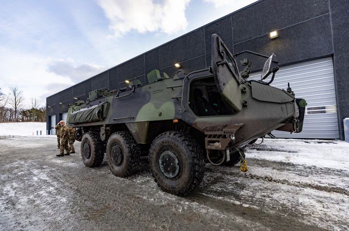 Në kazermën Almegaards, ku po ndërtohen hangarë, mbërrijnë ushtarë dhe automjetet Patria 6×6 po testohen për herë të parë.