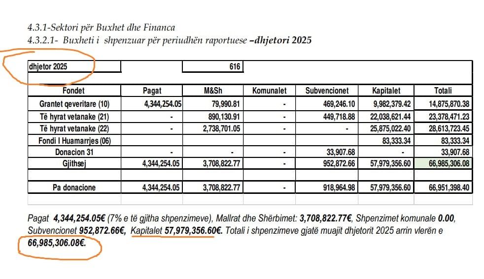 Në muajt paraprakë, shpenzimet kapitale kanë qenë dukshëm më të ulëta: rreth 1.3 milionë euro në shtator, 314 mijë euro në tetor, dhe vetëm 207 mijë euro në nëntor. Ky ndryshim drastik tregon se projektet dhe pagesat kapitale janë grumbulluar dhe realizuar pothuajse të gjitha në fund të vitit, pas një periudhe të gjatë bllokade.