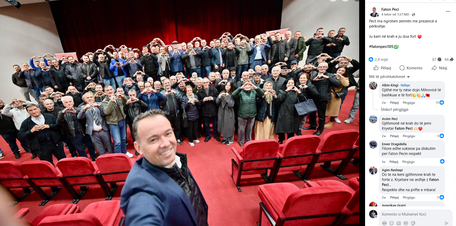 Faton Peci, në fushatën e fundit për zgjedhjet lokale, kishte publikuar edhe një fotografi me krejt kusherinjtë e tij, me krenari për mbështetjen që po merrte nga Pectë.