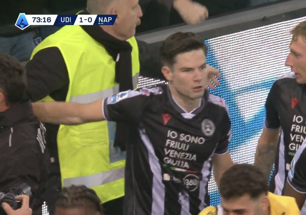 Mesfushori holandez shënoi një gol tejet të bukur me një goditje plot klas nga kufijtë e zonës së rreptësisë. Rezultati final 1-0 për Udinese, e cila ngjitet në vendin e 10-të me 21 pikë. Napoli momentalisht mban vendin e dytë me 31 pikë.