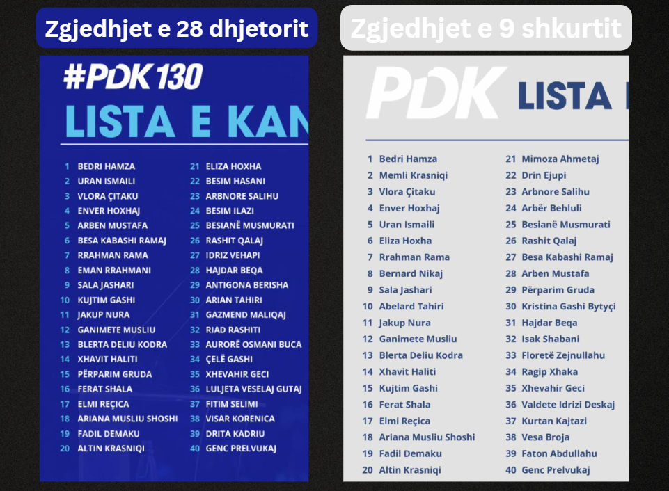 Vetëm një vit më parë, “Top 10-shja” e PDK-së i ngjante formulës që ishim mësuar ta shihnim rëndom, një renditje relativisht e parashikueshme, e përbërë nga figura tashmë të njohura të partisë, pa befasi. Megjithatë, pasi mori besimin për ta drejtuar PDK-në, ndikimi i Hamzës duket se u përkthye menjëherë në një rikonfigurim interesant të dhjetëshes së parë, duke rikthyer emra në krye që para një viti ishte e vështirë të lokalizoheshin në listën më të cilën kjo parti garonte në zgjedhje.
