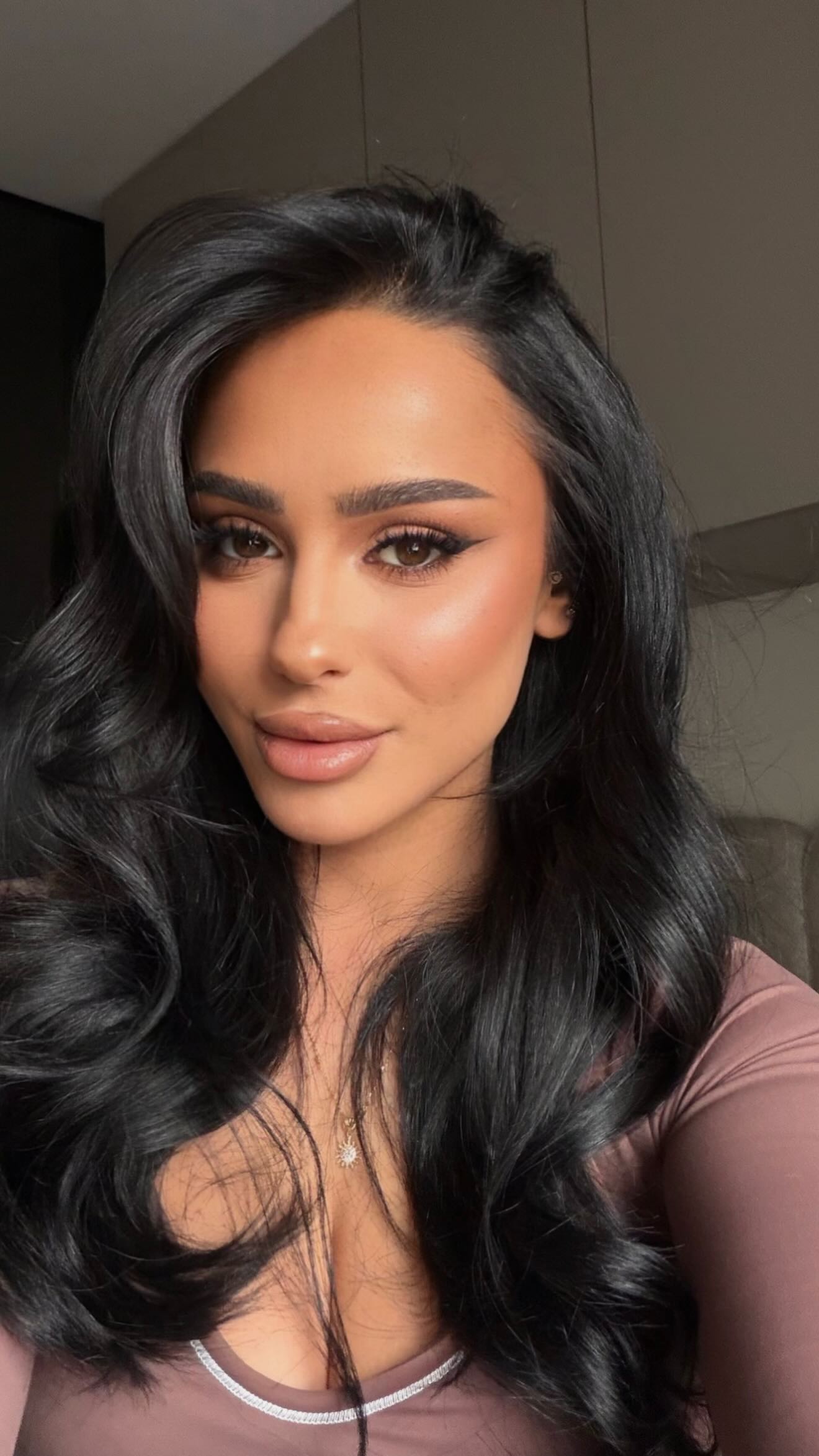 Me flokë të stilizuara dhe grim të lehtë, ajo duket elegante dhe plot shkëlqim.