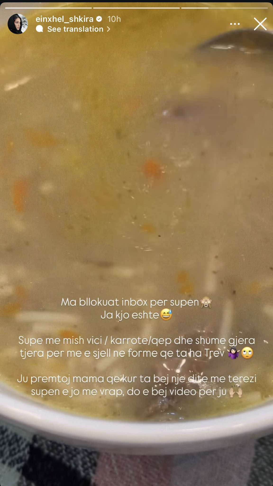 Së fundmi, ish-prezantuesja dhe ish-finalistja e “BBVA” ka publikuar një fotografi të një supe që ka zgjuar interes. Pamja e saj ka bërë që shumë ndjekës të kërkojnë recetën.