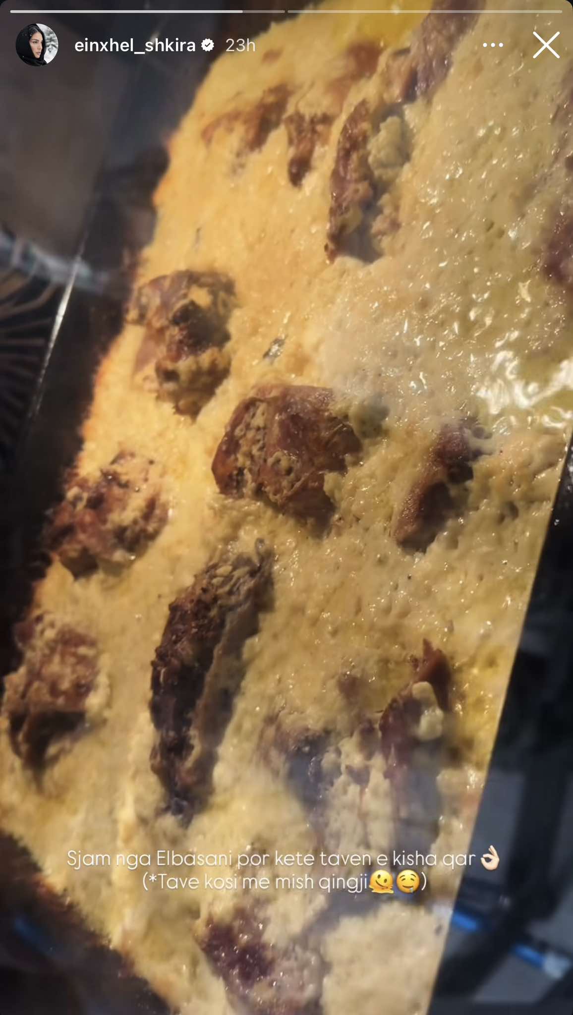 Së fundmi, Einxhel ka përgatitur një tavë elbasani, të cilën e ka publikuar në Instastory. Gatimi tradicional u prezantua si pjesë e rutinës së saj familjare.