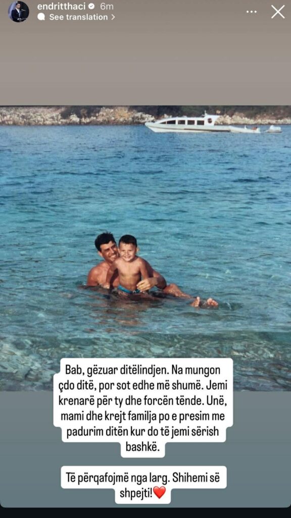 “Bab, gëzuar ditëlindjen. Na mungon çdo ditë, por sot edhe më shumë. Jemi krenarë për ty dhe forcën tënde”, ka shkruar ndër të tjerash ai.