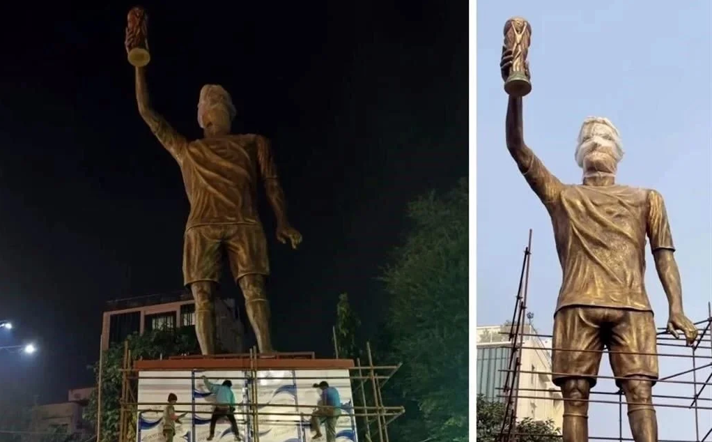 Kalkuta po inauguron statujën që autoritetet lokale e përshkruajnë si më të lartën në botë, dedikuar Lionel Messit. Një strukturë hekuri 70-këmbëshe (mbi 20 metra), e ndërtuar nga Sree Bhumi Sporting Club, në Lake Town, e cila përkon me mbërritjen e yllit argjentinas në Indi. Statuja e paraqet Messin duke ngritur Kupën e Botës dhe, sipas autorëve “u ndërtua për 40 ditë”, me detajet finale ende në përfundim.