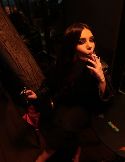 Në disa fotografi të postuara në rrjete sociale, Megi shfaqet me xhaketë, e më pas, në të tjera edhe “topless”.