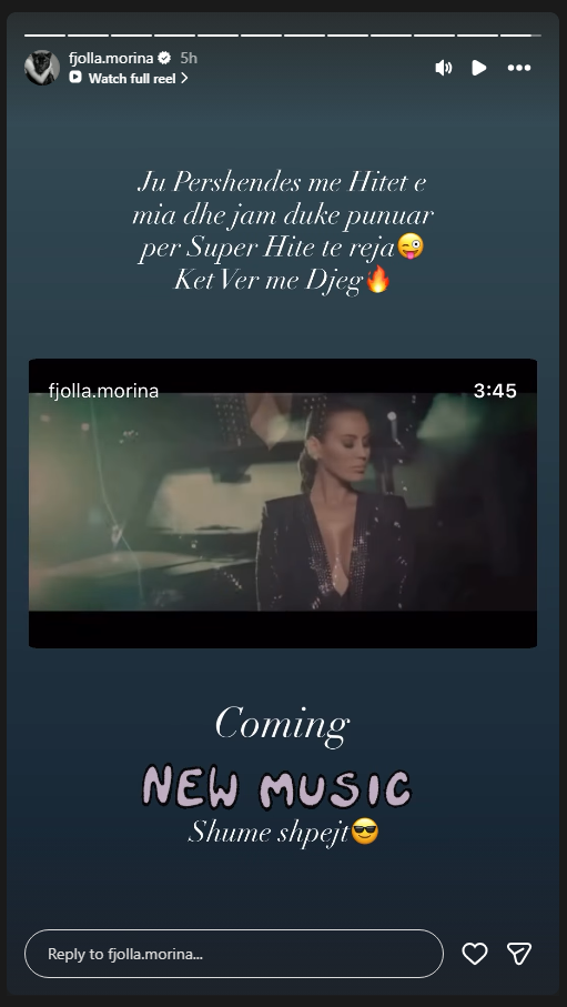 “Jam duke punuar për super hite të reja këtë verë me djeg”, ka shkruar artistja në Instagram duke mos zbuluar më shumë.