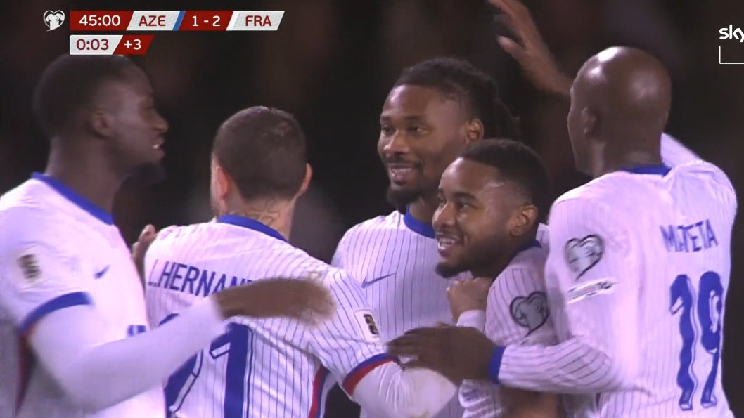 Akliouche shënoi golin e dytë për francezët në minutën e 30-të, pas një krosimi në zonë të Thuram dhe asistit të dytë të Malo Gusto. Në fund të pjesës së parë, Mahammadaliyev shënoi autogol në portën e tij, duke bërë që francezët ta mbyllin në avantazh 1-3 pjesën e parë.