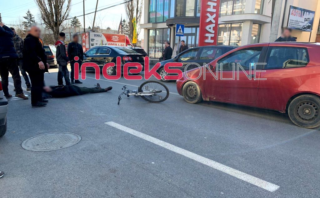 Një biçiklist është goditur para pa çastesh në rrugën “Zahir Pajaziti” në Poduejvë.