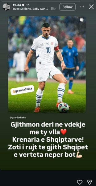 “Gjithmonë deri në vdekje me ty vëlla. Krenaria e shqiptarëve. Zoti i ruajt të gjithë shqipet e vërteta nëpër botë”, shkruan Taulant Xhaka.