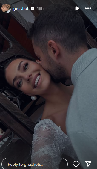 Në postimin e publikuar, ajo shihet e veshur me fustan nusërie, ndërsa i dhuron puthje partneri i saj, duke ngjallur menjëherë reagime të shumta në rrjet, shkruan “Kosovarja”.