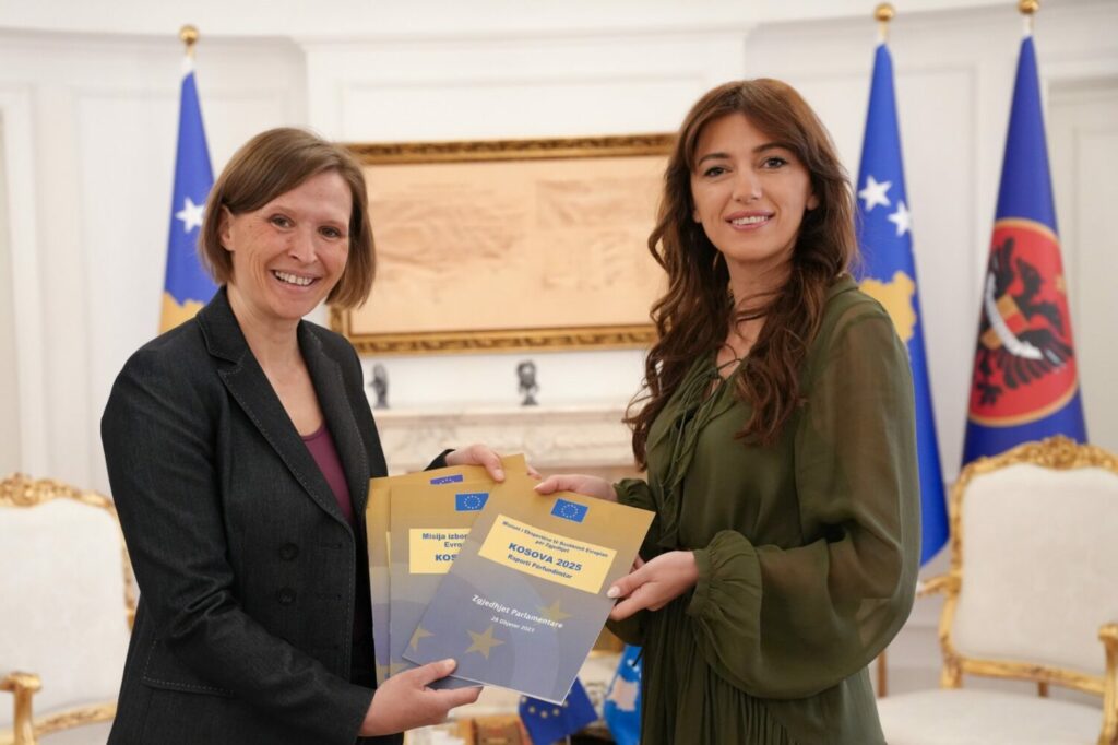 U.D. e Presidentes së Kosovës, Albulena Haxhiu, ka pritur sot në takim shefen në detyrë të Zyrës së Bashkimit Evropian në Kosovë, Eva Palatova, nga e cila ka pranuar raportin e Misionit të Ekspertëve të Bashkimit Evropian për zgjedhjet parlamentare të vitit 2025, si dhe raportin vlerësues për zgjedhjet komunale të mbajtura në tetor dhe nëntor të po atij viti.