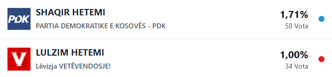 Por, Hetemi është mposhtur nga kandidati i PDK-së, Shaqir Hetemi, i cili ka marrë 58 vota.