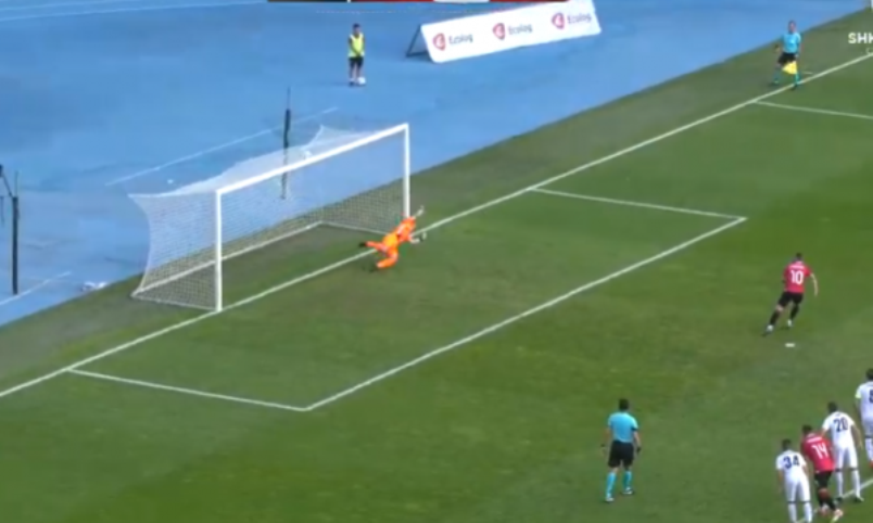 Që në minutën e gjashtë, kampioni i Maqedonisë Veriore ka fituar një penallti pasi një mbrojtje të skuadrës mysafire.