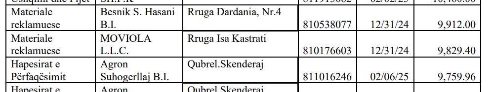 Aty figurojnë edhe kontraktorë të tjerë të institucioneve qendrore, si publike ashtu edhe lokale, siç janë kompanitë “Exfis”, “Ndërmarrja Tregtare Grafike Blendi O.P.”, “MY PRINT Sh.P.K.”, e të tjera. /Demokracia.com/