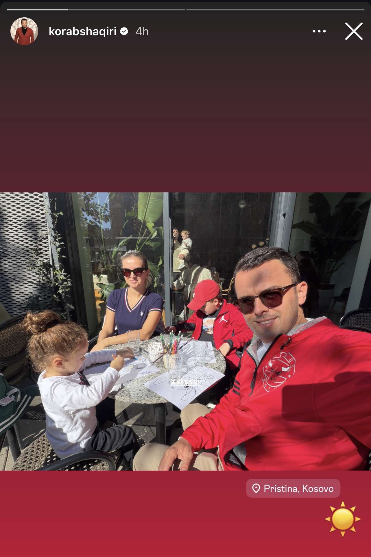 Megjithatë, këtë herë ai ka ndarë me ndjekësit një moment familjar përmes një InstaStory nga një tarracë në Prishtinë.