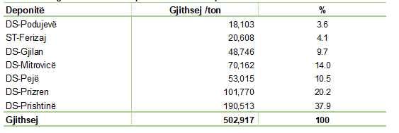 Deponia sanitare në Prishtinë (Mirash) ka pranuar sasinë më të madhe – 190 mijë e 513 ton, që përbën pothuajse 38% të totalit në nivel vendi.