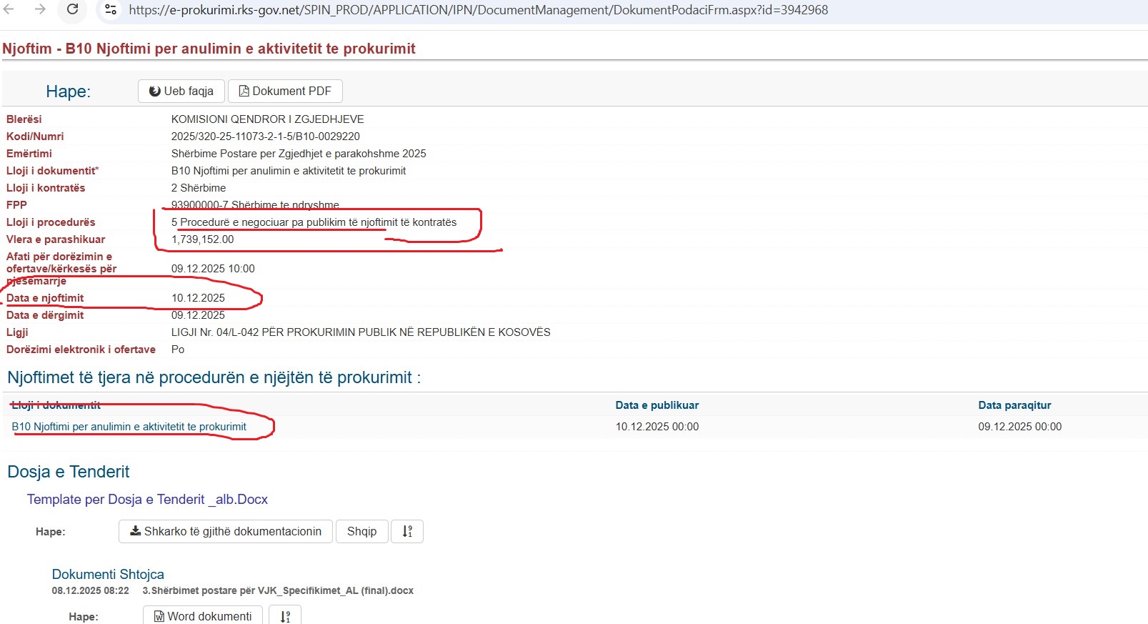 Me afrimin e zgjedhjeve parlamentare të 28 dhjetorit, Komisioni Qendror i Zgjedhjeve po shkon kah faza më kritike e përgatitjeve teknike. Në këtë periudhë kur kontratat emergjente duhej vetëm të konfirmoheshin dhe proceset të ishin duke u finalizuar, KQZ-së i ka dështuar një nga tenderët më të rëndësishëm të gjithë ciklit zgjedhor, ai për shërbimet postare të votimit jashtë vendit, me një vlerë të parashikuar prej 1.739.152 euro.