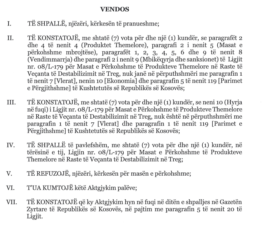 Vendimi u keqinterpretua qëllimisht nga Vetëvendosje për t’iu servuar me përdredhim debatit publik. Gjykata nuk kishte konstatuar se çmimet tavan janë në vetvete antikushtetuese dhe as nuk e ndaloi ndërhyrjen shtetërore në treg: por edhe dhe as nuk mohoi realitetin e inflacionit apo nevojën për mbrojtjen e konsumatorit. Ata refuzuan kontrollin politik të çmimeve. Kushtetuta, siç e lexuan ata, lejon ndërhyrje, por kërkon disiplinë dhe pavarësi institucionale. Një qeveri që mund të caktonte çmime me vendim një ditë “për bukën”, në tjetrën ditë mund ta bënte këtë për interesa elektorale, për ndëshkim të përgjedhur apo edhe për manipulim tregu. Ky ishte shqetësimi i Gjykatës.