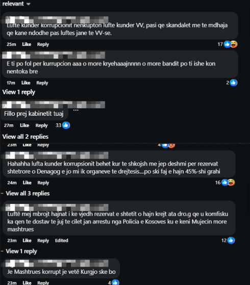 Postimi i tij u pasua me dhjetëra komente kritike, ku ndjekës të shumtë e akuzuan qeverinë e udhëhequr nga kreu i Vetëvendosje se po e përdor retorikën kundër korrupsionit ndërkohë që brenda radhëve të saj janë hapur skandalet më të mëdha të viteve të fundit.