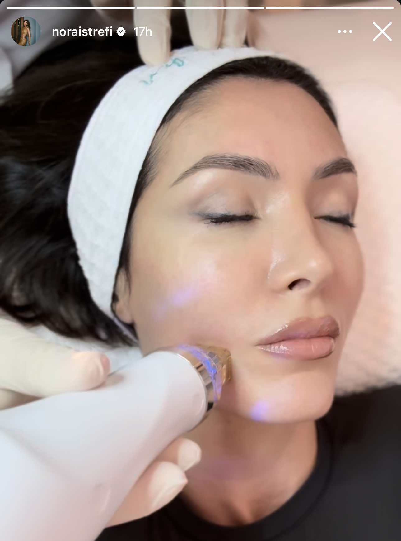 Në videon e postuar, Nora shihet gjatë procesit të trajtimit, ndërsa fytyra i ekspozohet pajisjes së lazerit, shkruan “Kosovarja”.