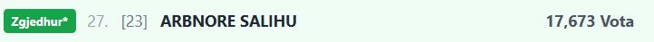Ai ishte i 5-ti me më së shumti vota në këtë parti, por vendin e tij, sipas ligjit, e zuri Albana Bytyqi.