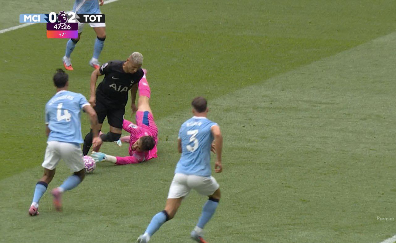 E teksa pritej mbyllja e pjesës së parë, erdhi “shokimi” i dytë për “qytetarët”. Në minutën e 45+2, pas një goditjeje këndi nga Kudus, portieri Trafford gaboi në dalje dhe Joao Palhinha përfitoi duke shtyrë topin në rrjetë nga afër. Goli i dytë i Tottenham elektrizoi sektorin e tifozëve londinezë.