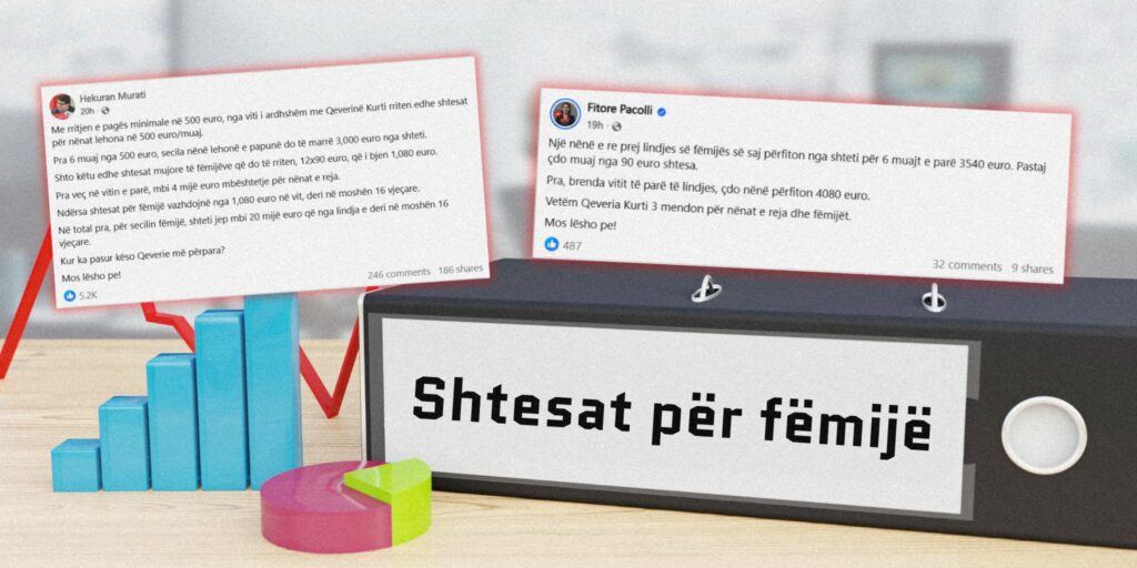 Përderisa shtesa prej 90 eurosh në muaj është premtuar për secilin fëmijë të familjes me 3 ose më shumë fëmijë dhe jo për familjet me 1 ose 2 fëmijë, kjo nga zyrtarë të Vetëvendosjes nuk është treguar plotësisht dhe në Facebook është paraqitur sikur çdo fëmijë do të marrë nga 90 euro në muaj.