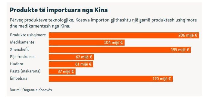 Vetëm vitin e kaluar, Kosova importoi nga Kina mbi 14.4 milionë euro pajisje elektronike, si: kamera digjitale, televizorë dhe antena, si dhe mbi 13 milionë euro telefona të mençur dhe aparate të tjera telefonike.