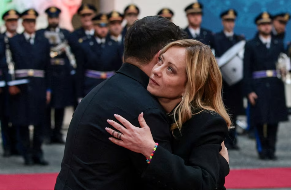 Meloni ka mbështetur vazhdimisht Ukrainën pas pushtimit rus, duke i siguruar aleatët perëndimorë që kishin frikë se ajo mund të ndiqte vijën pro-Moskës të një prej partive të saj të koalicionit, Lidhjes së ekstremit të djathtë.