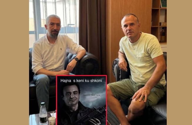 Përveç kësaj fotografie, në profilin e tij është parë edhe një foto e kryeministrit Albin Kurti e bërë me AI, ku ai është i shfaqur me një kallash në dorë e mbi foto shkruan ”Hajna s’keni ku shkoni”.