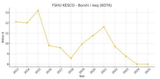 Buletini Ekonomik ka siguruar të dhënat e borxhit të keq për periudhën 2013-2025, ku shihet se në vitin 2015 borxhi i keq i KESCO-s shkoi mbi 13 milionë euro, kurse në vitin 2021 afër 12 milionë euro.