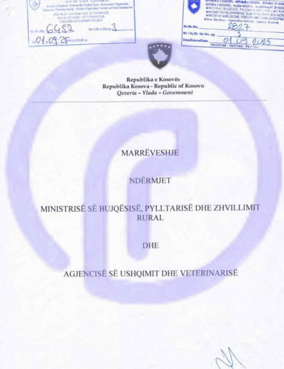 Dokumenti është nënshkruar nga sekretarja e Ministrisë së Bujqësisë, Venera Cerkini, dhe drejtori i Agjencisë së Ushqimit, Bekim Hoxha, një bashkëpunëtor i afërt i ministrit Peci.