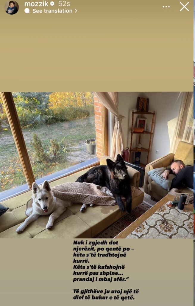 “Qentë s’të tradhtojnë kurrë, s’të kafshojnë kurrë pas shpine… prandaj i mbaj afër,” ka shkruar Mozzik.