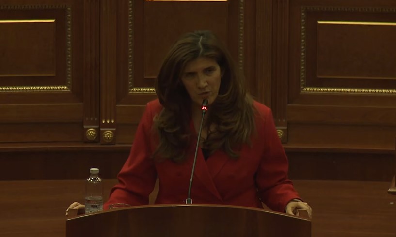 Deputetja e PDK-së, Ganimete Musliu, u kthye në foltore dhe fillo të ironizojë edhe ajo me Kurtin, por pastaj iu kthye deputetit të Lëvizjes Vetëvendosje, Sali Zybës.
