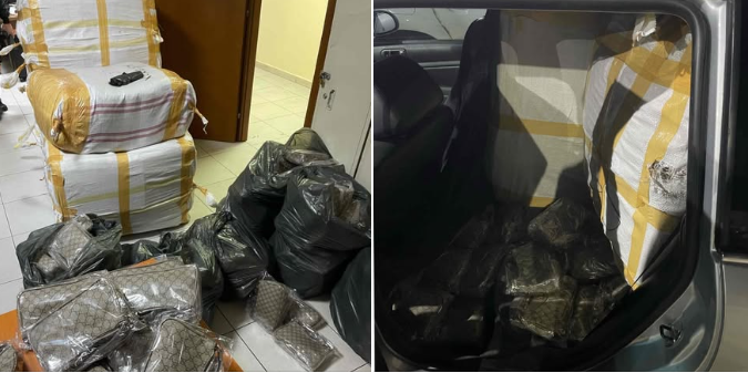 Në njoftim thuhet se zyrtarët doganorë kanë zbuluar një sasi të konsiderueshme mallrash të padeklaruara, të cilat ishin të vendosura në pako të ndryshme, në bagazh dhe në ulëset e pasme të veturës.